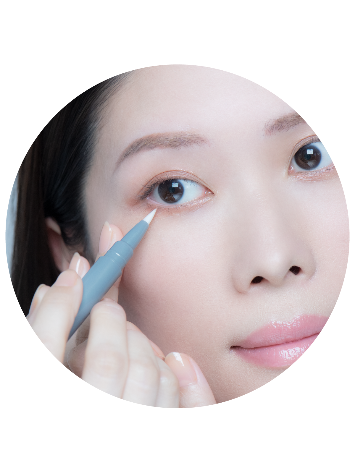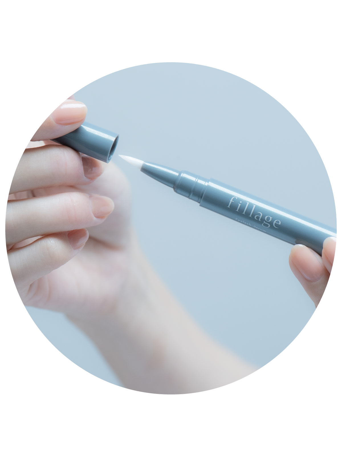 適量を、目頭から目尻に向かってまつ毛の生え際にやさしく塗布してください。毛と毛の隙間を埋めていくように優しく塗布します。