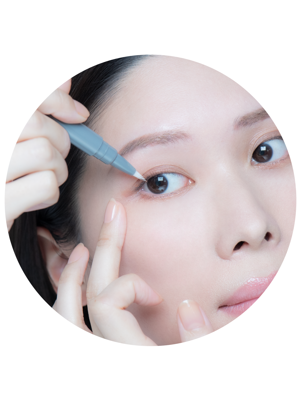 上まつ毛は上方から、下まつ毛は下方から塗布し、粘膜や目に入らないよう十分注意してください。持ちてと逆の手を、外側に引っ張るように添えると塗りやすくなります。